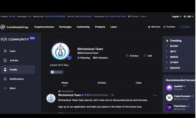 Cmc: https://coinmarketcap.com/currencies/bitchemical/